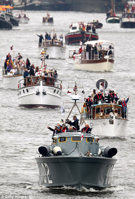 A "királyi szakasz" a SPIRIT of CHARTWELL-lel (fent) és a D-napon bevetést teljesített "történelmi hajók", élen az MTB 102-vel (lent).