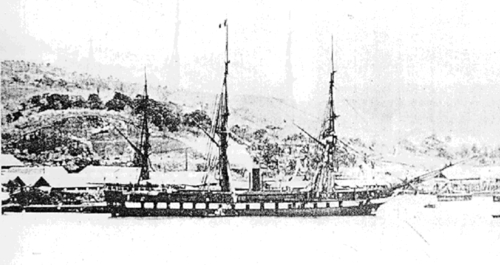 A Novara mint tüzérségi iskolahajó Polában 1890. körül. Eredeti fénykép