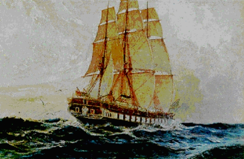 A Novara a tengeren az 1857-59-ben végrehajtott világkörüli útján. Alex Kircher festménye.